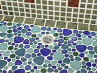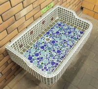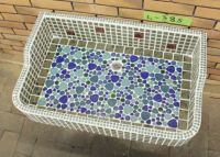 モルタル下地にモザイクタイルを張ったタイル流し台。