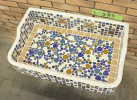 ガーデンシンク タイル Lサイズ-389 昭和レトロ モザイクタイル張り流し台