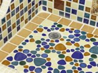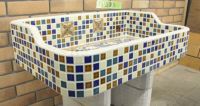 モルタル下地にモザイクタイルを張ったタイル流し台。