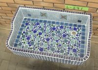 ガーデンシンク タイル Lサイズ-391 昭和レトロ モザイクタイル張り流し台
