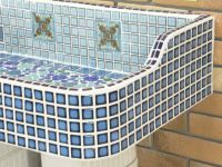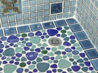モルタル下地にモザイクタイルを張ったタイル流し台。