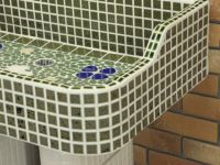 モルタル下地にモザイクタイルを張ったタイル流し台。