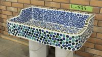 ガーデンシンク タイル Lサイズ-399 昭和レトロ モザイクタイル張り流し台