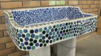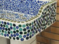 モルタル下地にモザイクタイルを張ったタイル流し台。