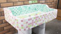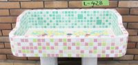 モルタル下地にモザイクタイルを張ったタイル流し台。 すべて職人が丹精を込めて製作している1点ものです。 潮風があたる場所や、気候条件が悪い外部でのご使用にも向いています。 手作りのためタイル目地は多少貫乳が入っております。 重たいので移動や設置は注意して行って下さい。 運搬は細心の注意をはらっておりますが、運送等で割れた場合は代品をお送りいたします。 その際は受注生産となりますので、一ヶ月程お時間をいただく場合がございます。 またすべて手作りのため、全く同じもののご用意はいたしかねますのでご了承ください。