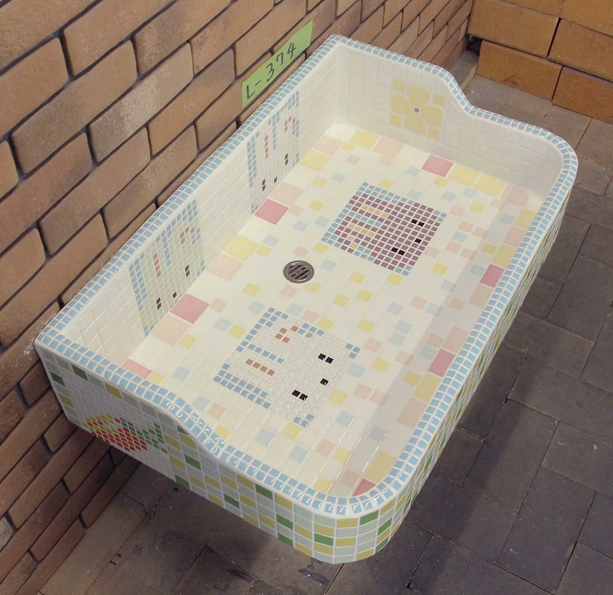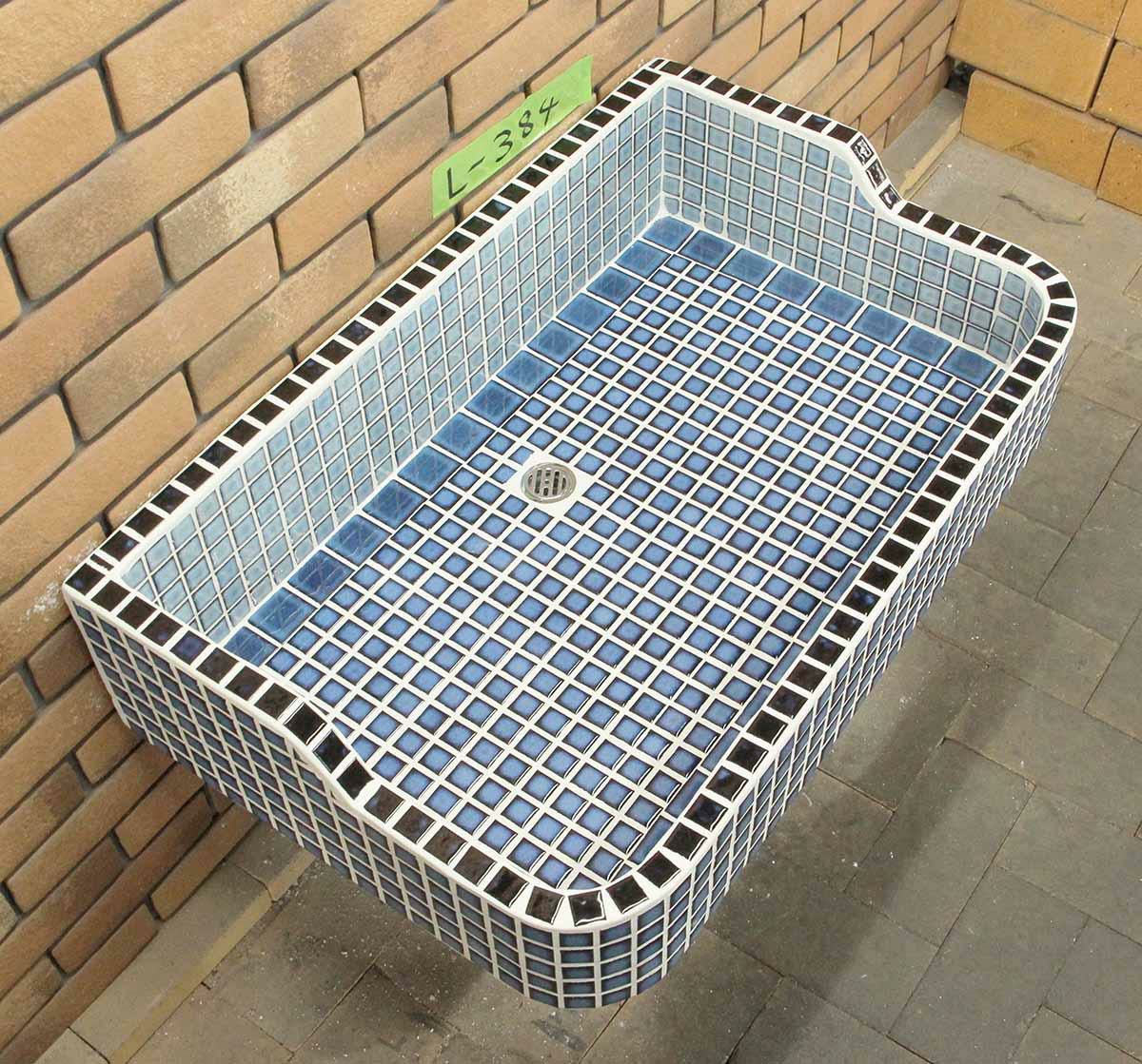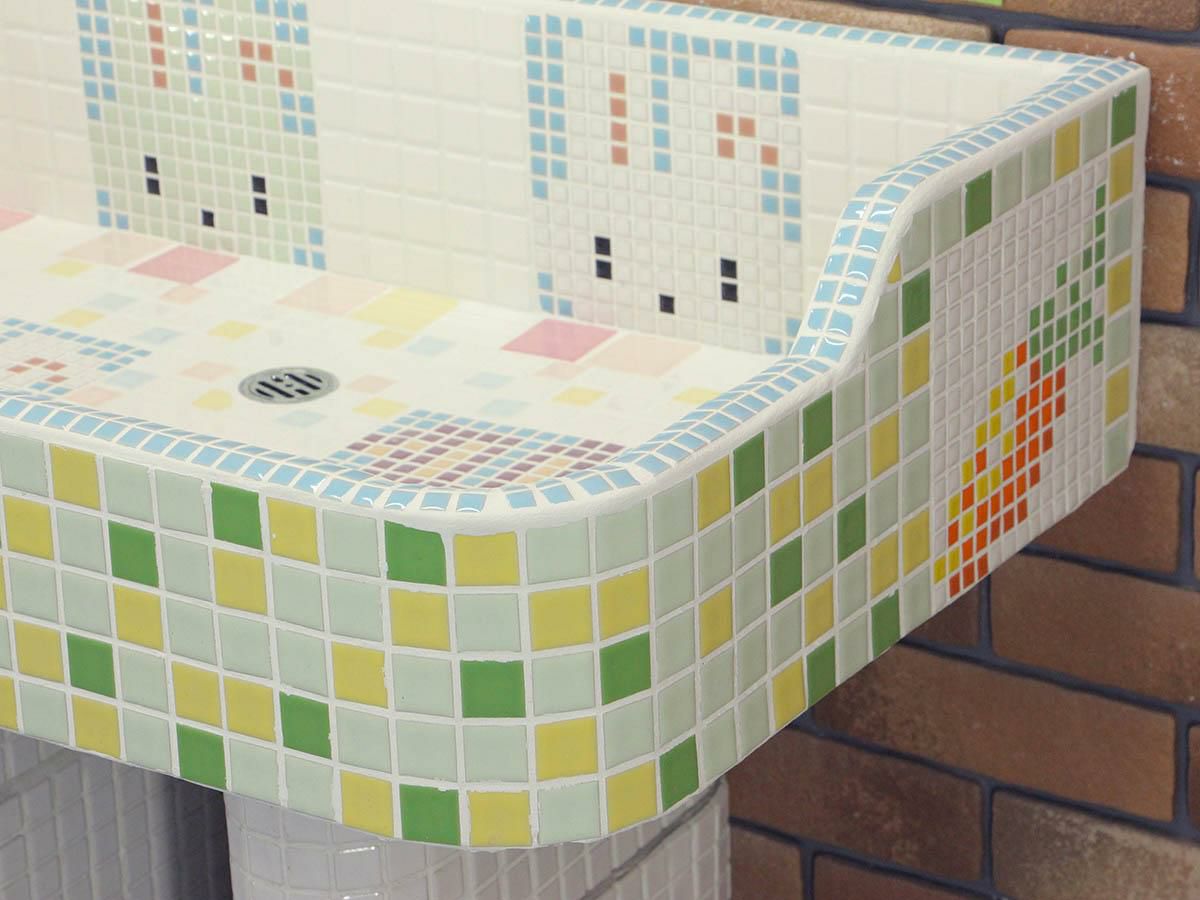 玉川窯業では、モルタル下地のシンクにモザイクタイルを張ってガーデンパンを制作しており、