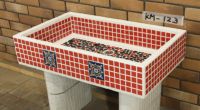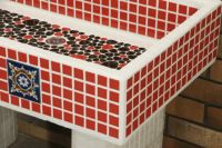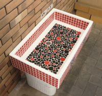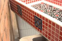 モルタル下地にモザイクタイルを張ったタイル流し台。