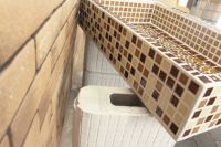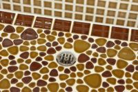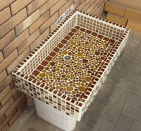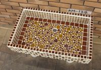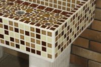 モルタル下地にモザイクタイルを張ったタイル流し台。
