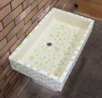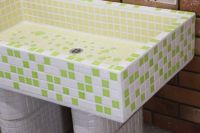 モルタル下地にモザイクタイルを張ったタイル流し台。