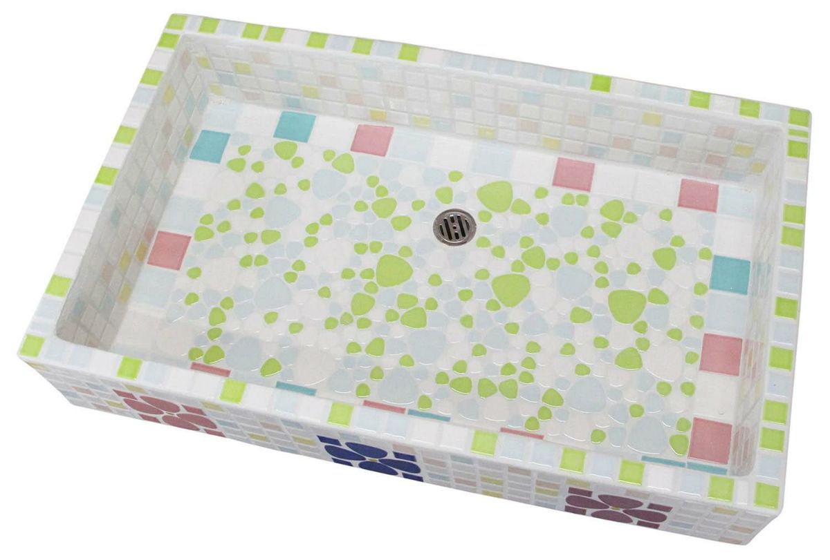 モルタル下地にモザイクタイルを張ったタイル流し台。 すべて職人が丹精を込めて製作している1点ものです。 潮風があたる場所や、気候条件が悪い外部でのご使用にも向いています。 手作りのためタイル目地は多少貫乳が入っております。 重たいので移動や設置は注意して行って下さい。 運搬は細心の注意をはらっておりますが、運送等で割れた場合は代品をお送りいたします。 その際は受注生産となりますので、一ヶ月程お時間をいただく場合がございます。 またすべて手作りのため、全く同じもののご用意はいたしかねますのでご了承ください。