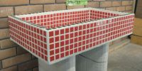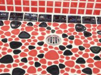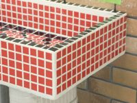 モルタル下地にモザイクタイルを張ったタイル流し台。
