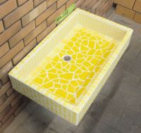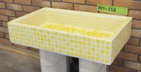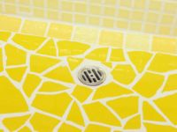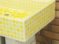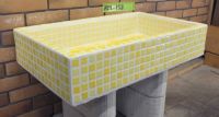 モルタル下地にモザイクタイルを張ったタイル流し台。