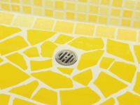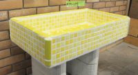 モルタル下地にモザイクタイルを張ったタイル流し台。