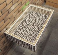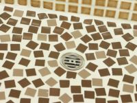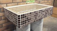 モルタル下地にモザイクタイルを張ったタイル流し台。
