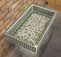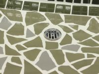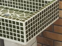 モルタル下地にモザイクタイルを張ったタイル流し台。