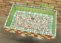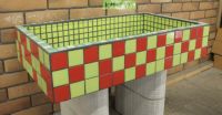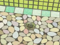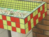 モルタル下地にモザイクタイルを張ったタイル流し台。