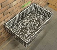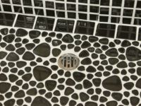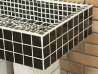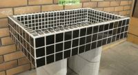 モルタル下地にモザイクタイルを張ったタイル流し台。