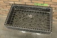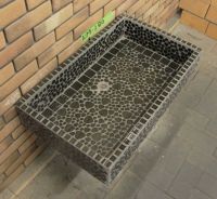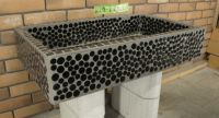 モルタル下地にモザイクタイルを張ったタイル流し台。