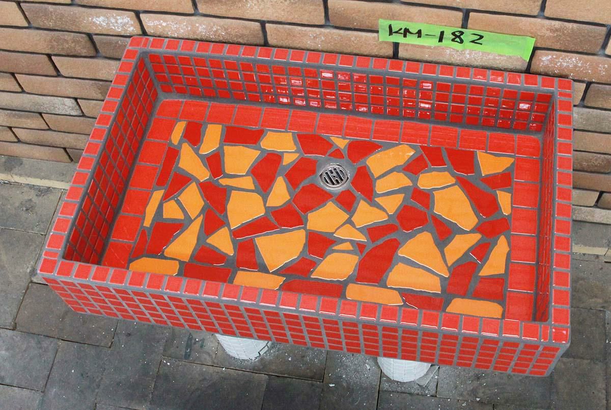 ガーデンシンク タイル 流し台 昭和レトロ モザイクタイル張り KMシリーズ KM-182 手作りガーデンシンク インテリア お洒落 老人ホームなどにも大好評です