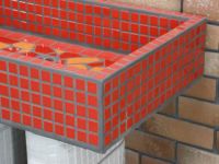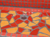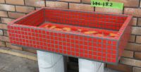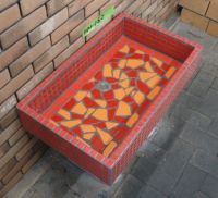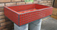 モルタル下地にモザイクタイルを張ったタイル流し台。