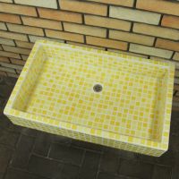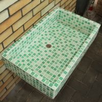 モルタル下地にモザイクタイルを張ったタイル流し台。