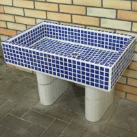 モルタル下地にモザイクタイルを張ったタイル流し台。 すべて職人が丹精を込めて製作している1点ものです。 潮風があたる場所や、気候条件が悪い外部でのご使用にも向いています。 手作りのためタイル目地は多少貫乳が入っております。 重たいので移動や設置は注意して行って下さい。 運搬は細心の注意をはらっておりますが、運送等で割れた場合は代品をお送りいたします。 その際は受注生産となりますので、一ヶ月程お時間をいただく場合がございます。 またすべて手作りのため、全く同じもののご用意はいたしかねますのでご了承ください。