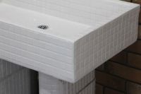 モルタル下地にモザイクタイルを張ったタイル流し台。