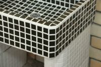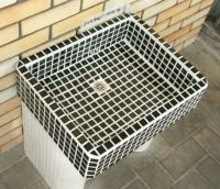 モルタル下地にモザイクタイルを張ったタイル流し台。