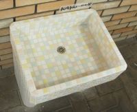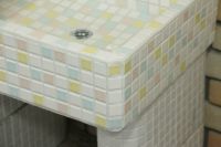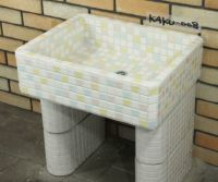 モルタル下地にモザイクタイルを張ったタイル流し台。