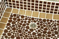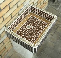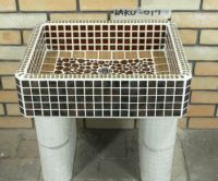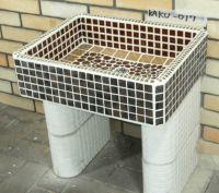 モルタル下地にモザイクタイルを張ったタイル流し台。
