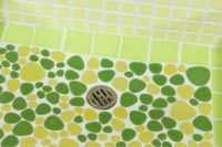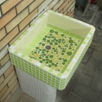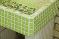 モルタル下地にモザイクタイルを張ったタイル流し台。