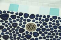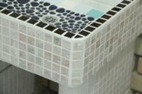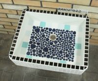 モルタル下地にモザイクタイルを張ったタイル流し台。