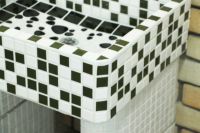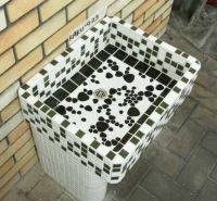 モルタル下地にモザイクタイルを張ったタイル流し台。