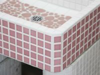 モルタル下地にモザイクタイルを張ったタイル流し台。