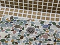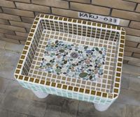 モルタル下地にモザイクタイルを張ったタイル流し台。