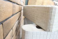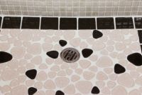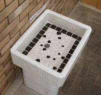 モルタル下地にモザイクタイルを張ったタイル流し台。