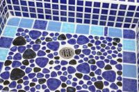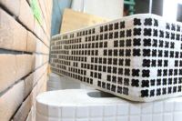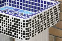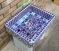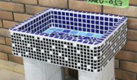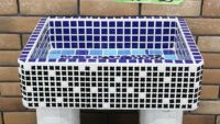 モルタル下地にモザイクタイルを張ったタイル流し台。