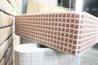 モルタル下地にモザイクタイルを張ったタイル流し台。 すべて職人が丹精を込めて製作している1点ものです。 潮風があたる場所や、気候条件が悪い外部でのご使用にも向いています。 手作りのためタイル目地は多少貫乳が入っております。 重たいので移動や設置は注意して行って下さい。 運搬は細心の注意をはらっておりますが、運送等で割れた場合は代品をお送りいたします。 その際は受注生産となりますので、一ヶ月程お時間をいただく場合がございます。 またすべて手作りのため、全く同じもののご用意はいたしかねますのでご了承ください。