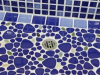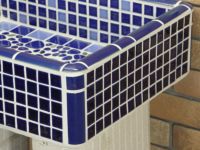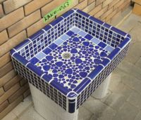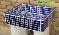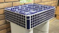 モルタル下地にモザイクタイルを張ったタイル流し台。