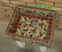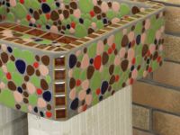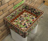 モルタル下地にモザイクタイルを張ったタイル流し台。