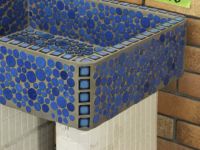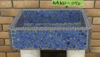 モルタル下地にモザイクタイルを張ったタイル流し台。