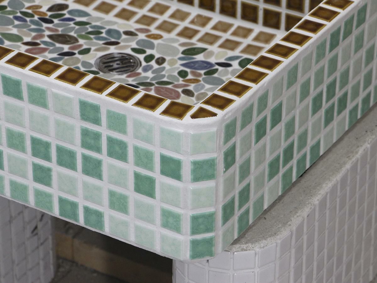 昭和レトロ 新タイル流し台 角形 225シリーズ 窯変ミックスカラー スーパーホワイト生地を使用 送料無料 ガーデンシンク シンク タイル流し