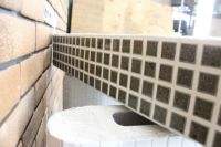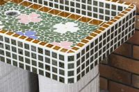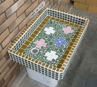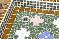モルタル下地にモザイクタイルを張ったタイル流し台。
