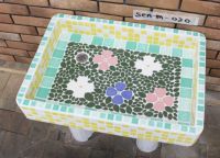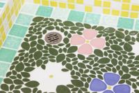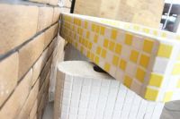 モルタル下地にモザイクタイルを張ったタイル流し台。