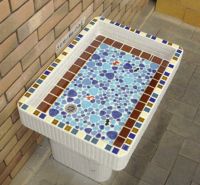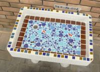 モルタル下地にモザイクタイルを張ったタイル流し台。