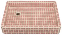 モルタル下地にモザイクタイルを張ったタイル流し台。