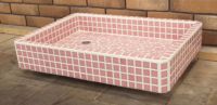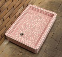 モルタル下地にモザイクタイルを張ったタイル流し台。