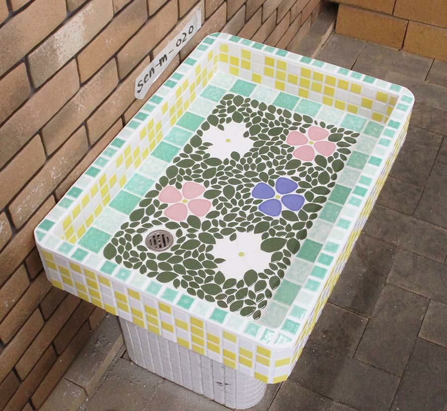 ガーデンパン ガーデンシンク タイル 流し台 昭和レトロなタイル流し台 Mサイズ ミックスカラー スーパーホワイト生地を使用 送料無料 シンク タイル流し エクステリア お洒落 老人ホームなどにも大好評です