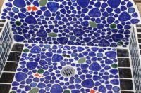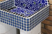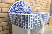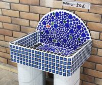 モルタル下地にモザイクタイルを張ったタイル流し台。