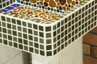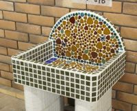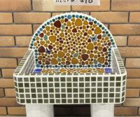 モルタル下地にモザイクタイルを張ったタイル流し台。